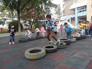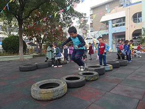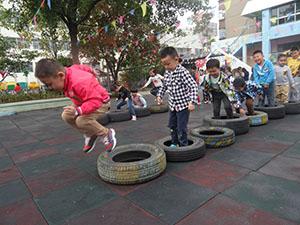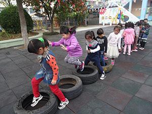 今天,大二班小朋友上了一节非常有意思的健康活动《好玩的轮胎》。在音乐背景下,小朋友和老师一起做了头部,上肢,腰部,下肢,跳跃和放松的准备动作,小朋友们都非常积极的参加了游戏,充分体验了玩轮胎的乐趣。