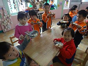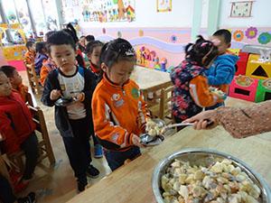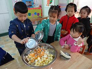 我们要做水果沙拉了,中二班的小宝贝们可真兴奋。早上来园时,大家带来自己想要吃的水果准备与同伴们一起分享。活动开始了,每个小朋友们都动起来手来,有的洗苹果,有的剥桔子,还有的在切香蕉,大家分工合作,一会儿就准备好了满满一盆的水果。然后老师拌上酸奶、沙拉酱、搅拌均匀,美味的水果沙拉就做好了。我们排队分享啦,自己做的水果沙拉真好吃!