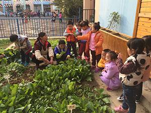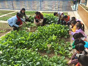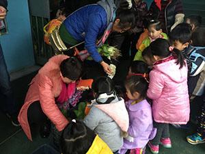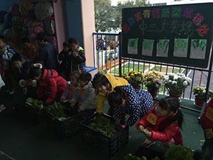菜宝宝长大了!我们今天来到我们的小菜园,一片绿油油的好漂亮呀~在老师的带领下我们把大白菜从地里拔出,一颗又一颗,不一会满满四大筐的大白菜,我们齐心合力把白菜抬回教室,戴上我们的小胸牌,迎宾,导购,还有收银员。