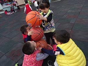在休息的时候,有的小朋友还一起合作用球摆出了一个“四个圈”的造型,真是太有才啦~