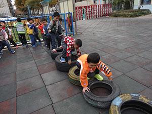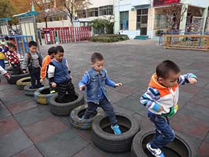 轮胎用处真正大,在学会滚轮胎的基础上中二班的宝贝们又发现了轮胎的新玩法。看!宝贝们把轮胎放倒在地,一会儿跳到轮胎中间、一会儿走在轮胎上,玩得真开心啊!在游戏的同时小家伙们的平衡和跳跃本领也得到了很大的提升……
