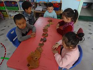 今天小四班的小朋友高高兴兴地跑去园地里捡到一些树叶,小朋友们相互帮助,回到活动室里大家一起团结有顺序的从大到小,从小到大排列,发展了幼儿规则意识,加强了幼儿动手动脑和观察能力。