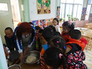 我们大三班的菠菜终于丰收了!我们一起去小菜地里采摘劳动成果,老师告诉我们,菠菜里富含维生素C、维生素K、矿物质(钙质、铁质等)等多种营养素。所以我们决定今天要品尝下我们的劳动果实。小朋友们和老师一起洗菜、和面、调馅、摊馅、压边,瞧,一个菠菜饼就完成了。哇!熟了的菠菜饼真香啊,都快流口水了!你们要尝一下吗?
