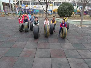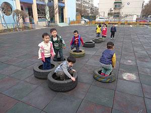 今天小四班、小五班的小朋友学习玩有趣的轮胎,练习玩轮胎的基本动作:跳、走、滚等。小朋友们相互合作两人滚轮胎,探索轮胎的几种不同玩法,体验与同伴合作游戏的乐趣。瞧,我们玩的多开心呀~