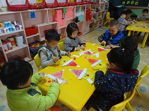 “叮叮当,叮叮当,铃儿响叮当…..” ,在圣诞节来临之际,小三班的小朋友们和老师一起制做了圣诞老人。我们用红色的蜡笔帮圣诞老人的帽子涂上漂亮的颜色,然后用白纸给他粘上了长长的胡须,最后再粘上眼睛和红鼻子。瞧,一个可爱的圣诞老人就做好了!大家做的认真极了,你也快来动手做一做吧!