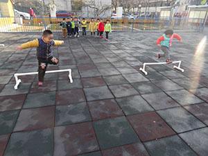 今天小四班的小朋友学习跑、跳等动作,提高助跑弹跳动作的协调性,小朋友们积极参与体育活动中,学会在跑、跳活动中保护好自己,体验了游戏带给小朋友们的快乐~