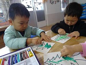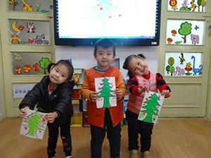 圣诞节孩子们最喜欢的节日,孩子们说所有的礼物都可以挂在圣诞树上,于是我们共同画圣诞树,孩子们的涂色能力很强,知道不能涂出边框,涂完圣诞树还在圣诞树上挂满礼物。本活动锻炼幼儿的手眼协调能力和创新能力以及想象力。
