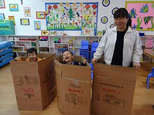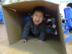 纸箱是幼儿生活中最常见的物品,贴近幼儿生活的物品会引起幼儿的兴趣,老师将纸箱抛给幼儿,引导幼儿主动尝试各种玩法,有的说可以钻一钻,有的幼儿喜欢进到纸箱里面来回走,孩子们真是创意无限。小六班的小朋友们玩的可开心了!本活动锻炼幼儿爬的能力、四肢协调能力和创新能力。