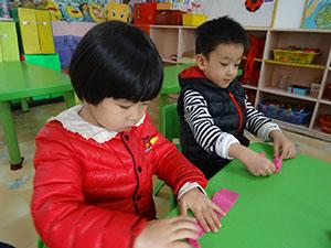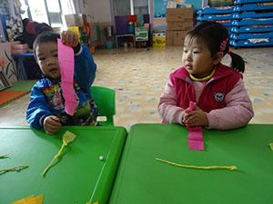 今天张老师带着小朋友一起制作小手链,制作方法很简单,选自己喜欢的颜色皱纹纸,拧一拧,搓一搓,搓成一个长条,漂亮的小手链就制作完成啦,小五班的小朋友都带上了自己制作的手链,心里美滋滋的互相炫耀着!小朋友都特别的喜欢。