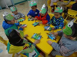 今天,小三班的小朋友们在老师的指导下,通过帮助小青蛙捉害虫的游戏学习了手口一致的点数1到4,并能说出总数。小朋友们在游戏中不仅学习了新知识,还锻炼了身体,发展了幼儿的跳跃能力,真是一举两得呢!