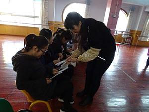 此次考核的内容为教师所在级部山东省编教材中的全部儿童歌曲,教师现场随机抽取两首自弹自唱。要求弹唱流畅,声音响亮、吐字清晰,声情并茂,体现出歌曲的特点,并能根据歌曲的内容风格选择合适的伴奏。