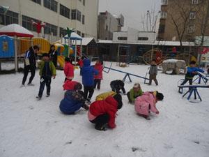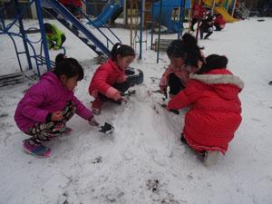 盼望着的大雪终于下了,一大早来园,大一班的我们来到院子,先和大雪人来个合影,接着和伙伴们团雪球、打雪仗、堆雪人,我们玩得甭提多开心了,下雪真好啊。