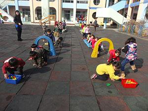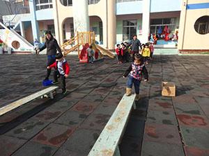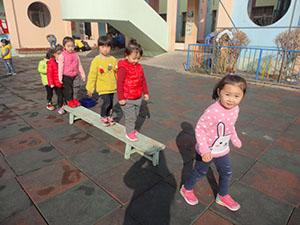 今天小四班的小朋友分成两组进行户外游戏《小刺猬背果果》,小朋友们走过桥,爬过小山,钻过山洞,到终点将果子摘到,放回了小筐里。初步锻炼了幼儿的平衡、钻、爬等综合协调能力,大家玩的真开心呀~
