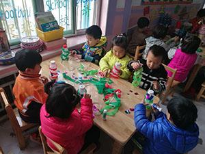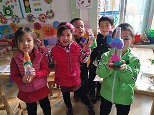 中二班的小家伙们用小巧手来做创意花瓶啦!大家事先准备好各种形状的花瓶,然后动手、动脑发挥自己的想象力,不一会儿,各种颜色的太空泥就变成了花瓶的装饰品,看,我们的创意花瓶漂亮吧!
