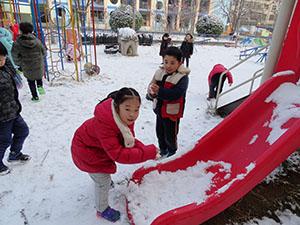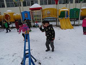 下雪了,上学去。来到幼儿园白茫茫的雪地里有位大雪人,我们中一班的小朋友相约一起拍照留念。看!我们不光和雪人拍了集体照片,还和小伙伴们一起打雪仗了。团雪球、打雪仗下雪咯!大家玩的好开心。