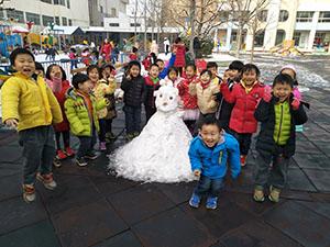 开学啦,小雪花们也俏皮的来到幼儿园,欢迎大家的到来!清晨,当小朋友们踏着路边的白雪来到幼儿园,门口有小雪人在迎接大家。我们中二班的小伙伴们相约进行打雪仗活动。看,大家玩得真开心啊,最后记得根小雪人合影留念哦!