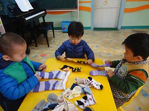 今天,小三班的小朋友们在老师的指导下学习根据颜色、形状帮袜子和鞋子配对。同时还掌握了叠袜子的方法。看,大家学的多认真啊。小朋友们不仅体验了劳动带来的乐趣,还培养了将物品及时归位的好习惯呢!如果你也学会了那就快帮妈妈整理了一下吧!