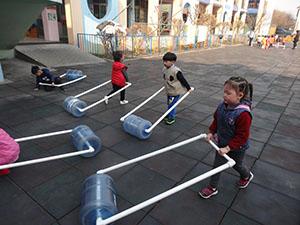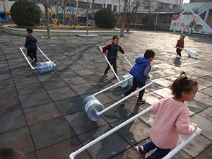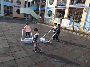 今天小四班的小朋友体验当送水员叔叔,了解送水员的辛苦,小朋友们保持身体平衡,手拉水桶,不管任何困难,都安全的将水桶送到每个人的家里。培养了幼儿不怕困难,勇于挑战的能力。瞧,我们厉害吗?