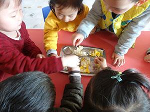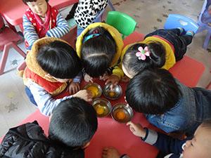 今天小四班的小朋友认识大大小小的蛋,知道有蛋清、蛋黄、蛋壳,能按照蛋的大小进行排列,认识蛋的基本结构,知道蛋有营养吃了对身体有好处。课后,老师将鸡蛋做成了美食,小朋友们一起分享,真的是好开心呀~