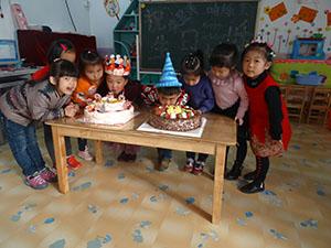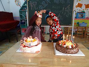 “祝你生日快乐,祝你生日快乐,祝你生日快乐。。。”在欢快的歌声中,今天中二班迎来了两位生日宝宝,大家一起唱生日歌、许愿、吹蜡烛。。。在孩子们的声声祝福中,大家一起开心的斥其蛋糕来,祝两位宝贝生日快乐,天天开心!!!