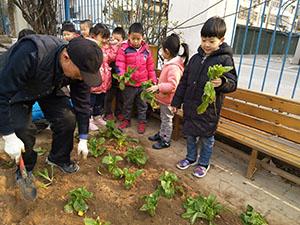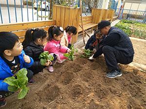 莴苣搬新家啦!中二班小家伙们忙得不可开交,因为我们要把育好的莴苣苗搬新家。老师把种植“专家”李爷爷请来帮忙。首先要给小苗浇足水,这样拔起来会方便些,然后再李爷爷的帮助下我们把拔下来的莴苣苗栽到新家里。别看我们年龄小,干起活来可是棒棒的,小小莴苣快快长大吧!