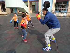 3月17日上午,我们中二班邀请了郑好爸爸参加了幼儿园组织的“家长进课堂”活动!郑好爸爸是志成拳击的教练,他给小朋友们带来的是趣味拳击的户外活动。