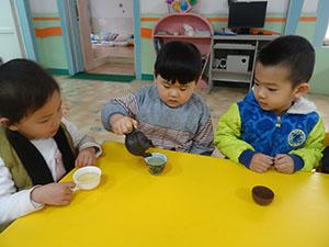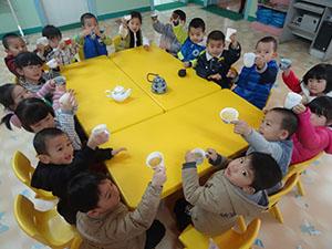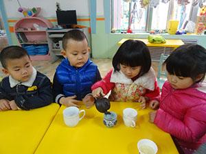 今天,小三班开展了一节有趣的社会活动—大茶壶小茶杯。小朋友们先了解了泡茶的过程,学会使用礼貌用语招待客人。然后每个小朋友又亲自倒茶品茶,体验了大茶壶弯弯腰,咕噜咕噜倒了一杯水的感受。瞧,小朋友们品起茶来还真是有模有样呢,好玩极了!最后,大家还跟着老师模仿大茶壶倒水呢!你也快来试一试吧!