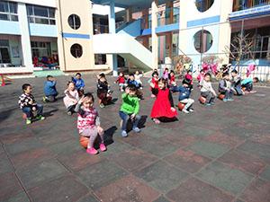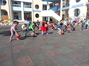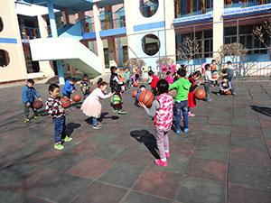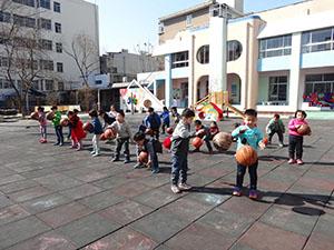 看篮球在中一班小朋友们得手里舞动着,跳跃着;时而跳上跳下;时而跑前跑后。孩子们你给我数数,我给你数一数,累了我们就以球为凳休息一下。听,操场上依旧会传来嘭嘭声和孩子们的欢笑声。