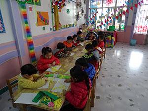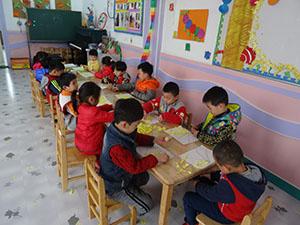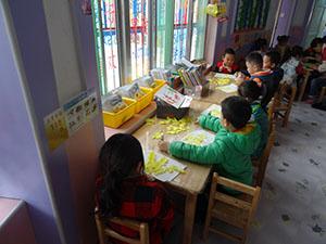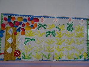 春暖花开,柳树发芽,看美丽的迎春花争相绽放,小朋友们齐动手让中三班布满漂亮的迎春花,彩色纸条拧一拧粘在细长的枝干上,一片接着一片,密密麻麻的布满整个枝干,一根接着一根,枝繁叶茂,鲜艳动人,茂密盛开一片美好的样子。