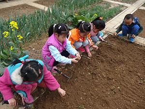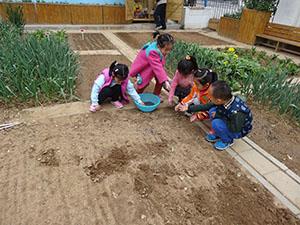 今天大三班的小朋友去小菜园整理土地,为种菜做准备。我们先撒上肥料,将土翻过来,并把地里的垃圾拣出来,把最后将土地平整,享受了劳动的快乐。