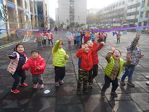 今天,小三班的小朋友在老师的带领下一起练习纵跳触物的本领。大家自由选择悬挂在绳子上的蝴蝶,然后看准目标双脚同时向上跳起触摸蝴蝶。每个小朋友都跃跃欲试。活动中不仅锻炼了小朋友的下肢力量还体会到了集体游戏的乐趣。瞧,大家玩的多开心啊!