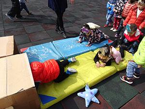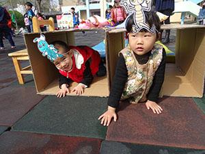 孩子们变成了一只只可爱的小蚂蚁,背上沉重的粮食,爬过软软的“沙滩”,钻过黑漆漆的山洞,最后终于把粮食成功运出。本次健康活动锻炼了幼儿四肢爬的能力以及身体的协调能力和平衡力;孩子们非常勇敢,知道遇到困难要勇往直前。