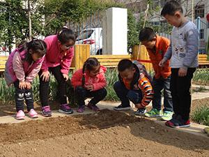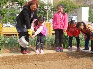 春天到了,万物生长的季节到了,我们大三班的小朋友要种生菜了!先搂沟,浇上水,然后开始撒种子了,最后把土埋上,生菜就种完了。小朋友们一起劳动,一起合作,好开心啊!