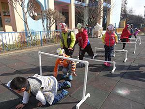 今天天气不错,中一班的小朋友们变身为一只只小猴子出山啦!看孩子们翻山越岭,时而上跨时而下爬,不断穿梭着。锻炼了身体协调性也增强了体质。