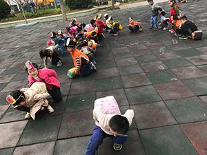 今天中一班的小朋友们学了一首欢快的儿歌《快乐的小蜗牛》,一转眼他们就变成小蜗牛的样子出现在操场上了。看他们背着房子出去旅游了,一会儿上山坡,一会儿玩游戏,一会儿停止休息,嘴巴里还不停的唱着我是快乐的小蜗牛!哈哈!欢乐的同时锻炼了身体,增强了腿部肌肉、腰部力量,还练习了儿歌呢!
