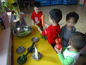 今天老师带着小朋友一起认识几种蔬菜,并让小朋友观察了几种不同的蔬菜,还制作了蔬菜沙拉,小朋友们都特别的开心!通过这个活动不仅让幼儿知道多吃蔬菜的好处,还激发了他们产生想吃蔬菜的愿望。