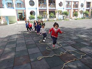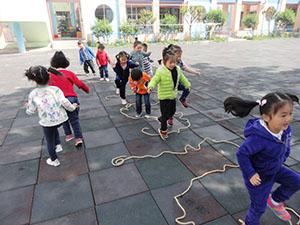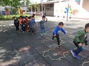今天小四班的小朋友尝试了绳子的几种玩法,认识并请幼儿自由玩绳子,探索绳子的各种玩法,能够学习单脚跳等动作,体验对玩绳活动带来的乐趣。