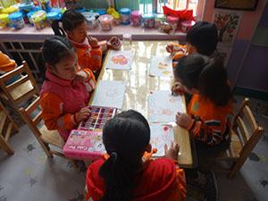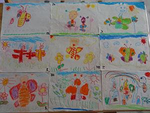 快看中一班的小朋友们在桌上干什么呢?哦,原来再认真的画蝴蝶。五颜六色的蝴蝶飞舞在花丛中,还有小朋友添画的太阳、蓝天、白云和小虫呢!瞧瞧看,你喜欢哪一种风格!