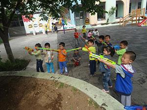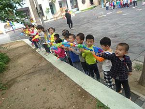 天气变热了,正是玩水枪的好时节。今天,小三班就开展了一节好玩的健康活动。小朋友们尝试用水枪玩各种游戏。我们拿着水枪互相比试着、探究着。水枪在小朋友的手里时而散出美丽的水花,时而像喷泉一样涓涓流出……大家你追我赶,玩的千变万化。瞧,大家玩的多开心啊!不仅锻炼了手的握力还体验了无限的乐趣。你也快来和我们一起玩吧!