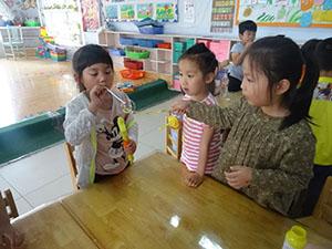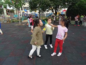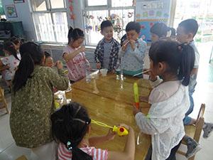 今天,大二班小朋友都变成了小小发明家,能自己动手制作各种吹泡泡的工具和泡泡水啦!在教室成功实验后,我们就来到操场上进行了吹泡泡的游戏,小朋友们开心极了!