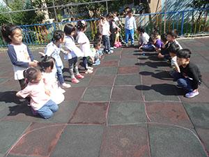 今天中一班的小朋友们在操场进行了新活动“跳房子”,这不一个一个排队练习腿部跳跃力量。瞧,跳房子正在火热进行中,孩子们锻炼腿部力量的同时还增进身体协调能力,促进小伙伴的团结意识。孩子们玩的多开心啊!欢迎快来参加。