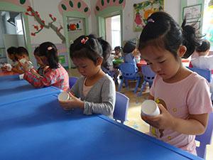 小一班幼儿尝试用一次性纸杯进行设计,制作自己喜欢的纸杯花或者纸飞盘,感受纸杯的多变性、易操作性,进而提高想象力、创造力和动手能力。体验制作活动带来的乐趣,激发环保意识。