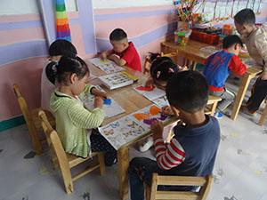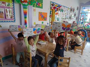 漂亮的蝴蝶天上飞,我们为蝴蝶穿新衣,“我喜欢蓝色!我喜欢红色!我喜欢五颜六色!”小朋友们来做服装设计师,为蝴蝶做出一身身漂亮的衣服,满屋的蝴蝶飞呀飞,小朋友们像花朵,中三班变成了美丽的小花园。