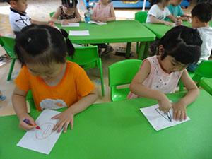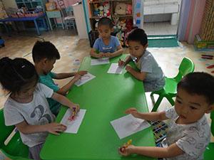 瞧!大家画的多认真呀!通过活动让幼儿认识各种安全标志,学会保护自己!