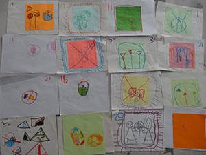 看,中一班的小朋友们在干什么呢?一边看一边认真倾听哥哥姐姐讲的安全标志,个别小朋友还能提出疑问。原来他们正在探讨身边需要随时注意的安全位置,还有小朋友要创设自己生活中的安全隐患标志。这不回到班里就开始思考、动手制作起来,你能看懂我们设计的安全标志什么意思吗?哈哈!