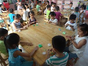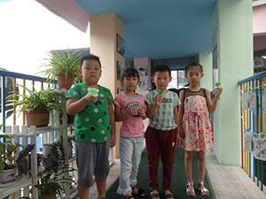 我们大三班种植园里种的生菜,今天,所有小朋友一起学用用太空泥捏生菜。先将小圆球团成水滴形,再捏出叶片的形状,最后将叶片粘在一块,就成功了。虽然有些小朋友捏的不太像,但他们享受到了过程,也是开心的!