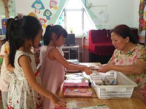 今天,我们“大三班文具店”开业了!你看,有那么多小顾客,他们都来选择自己需要的文具,但必须用整好的人民币进行购买。他们在游戏中初步掌握了人民币的换算关系,还掌握了简单的付钱方式。