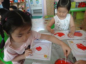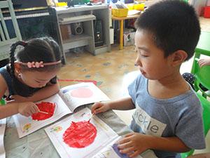 小五班的小朋友在干什么呢?在帮太阳涂颜色呢,夏天的太阳很顽皮,很热情,瞧~陈郁小朋友涂的多认真呀~