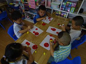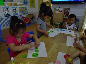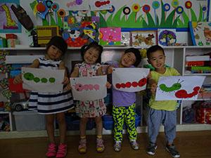 夏天的草丛里有着各种各样的小昆虫,今天我们小六班的小朋友在制作他们喜爱的毛毛虫,孩子们运用各种颜色的圆形卡纸拼摆毛毛虫的身子和头部,然后再用胶棒进行黏贴,最后运用黑色的勾线笔进行添画,有的添上了好多条腿、有的添上了触角、还有的添上了嘴巴、眼睛等;孩子们非常积极和认真,很有兴趣的制作。本次艺术活动锻炼了幼儿动手操作能力和创新能力。