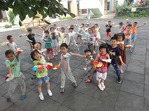 今天中一班的小朋友们在教室进行了手工制作五彩花。制作完后,我们一起带着花到场地上进行了色彩对对碰、我带花儿起飞、我和花儿来舞蹈。瞧!锻炼手臂肌肉的同时增强了身体平衡力、色彩欣赏力、手眼协调能力等等。最重要的是小伙伴们玩儿的很开心!快加入我们的活动中吧!